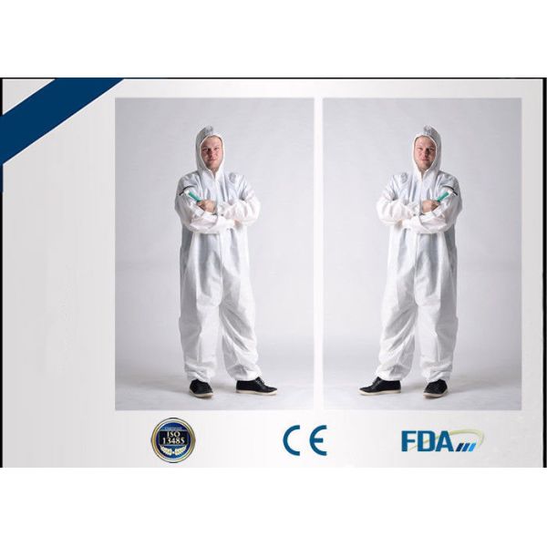 Breathable Disposable Medical Coveralls , Anti Static Hooded Cleanroom Suit Images |